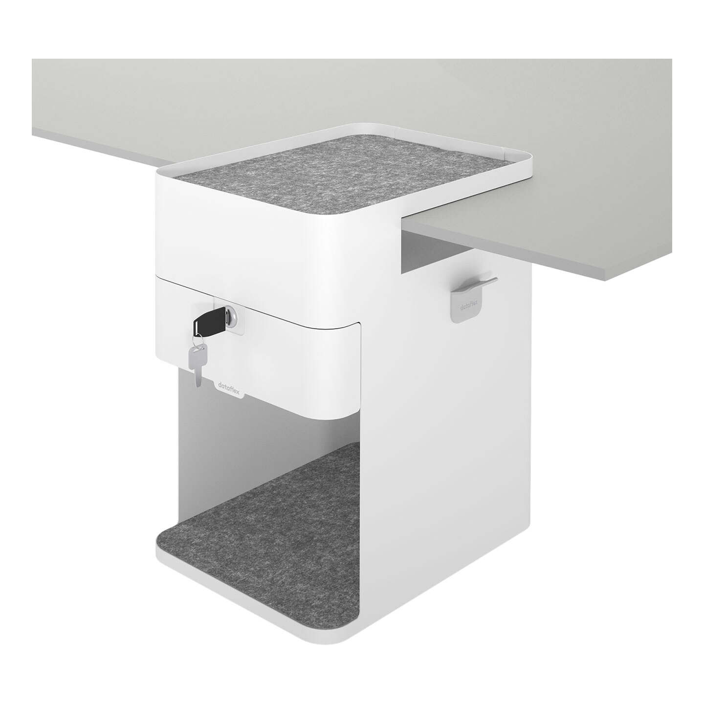 Der innovative Bento®-Desktoplocker ist der zeitgemäße Nachfolger des klassischen Rollcontainers, der für Activity Based Work-Umgebungen und modernes Arbeiten neu gestaltet wurde. Bewahren Sie Ihre Sachen in diesem schön gestalteten persönlichen Schrank auf, der sich mit Ihrem Sitz-/Steharbeitsplatz mitbewegt. Alles ist griffbereit und wenn Sie nicht an Ihrem Schreibtisch sitzen, sind Ihre Sachen in der abschließbaren Soft-Close-Schublade sicher verstaut. Der Kleiderhaken sorgt dafür, dass Ihr Rucksack oder Ihre Tasche nicht auf dem Boden stehen, und mit dem optionalen USB-A+C- Schnellladegerät bleiben Ihre Geräte geladen und einsatzbereit.
