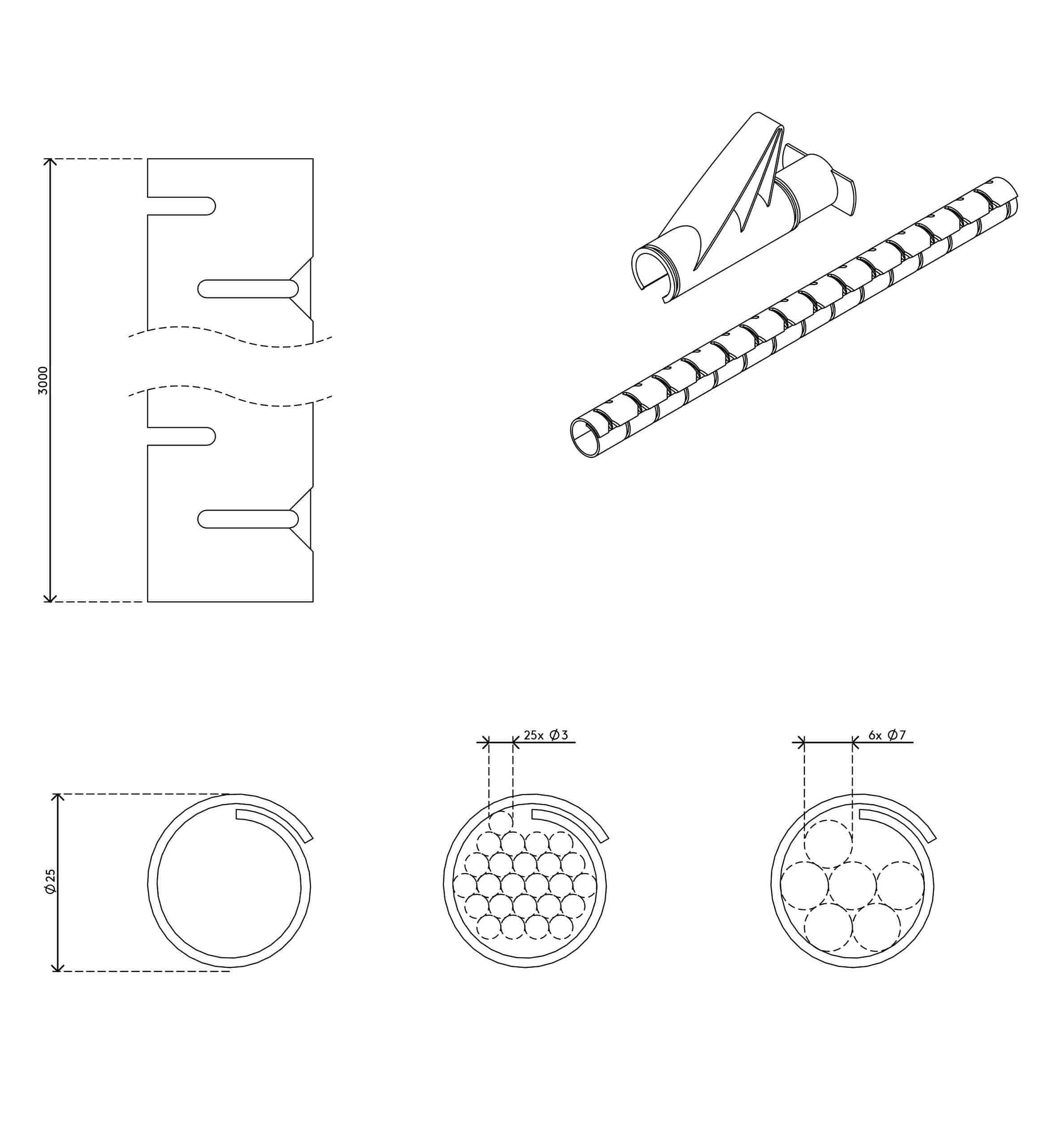 - Kabelschlucker mit mitgelieferter Einzugshilfe in einer Verpackung