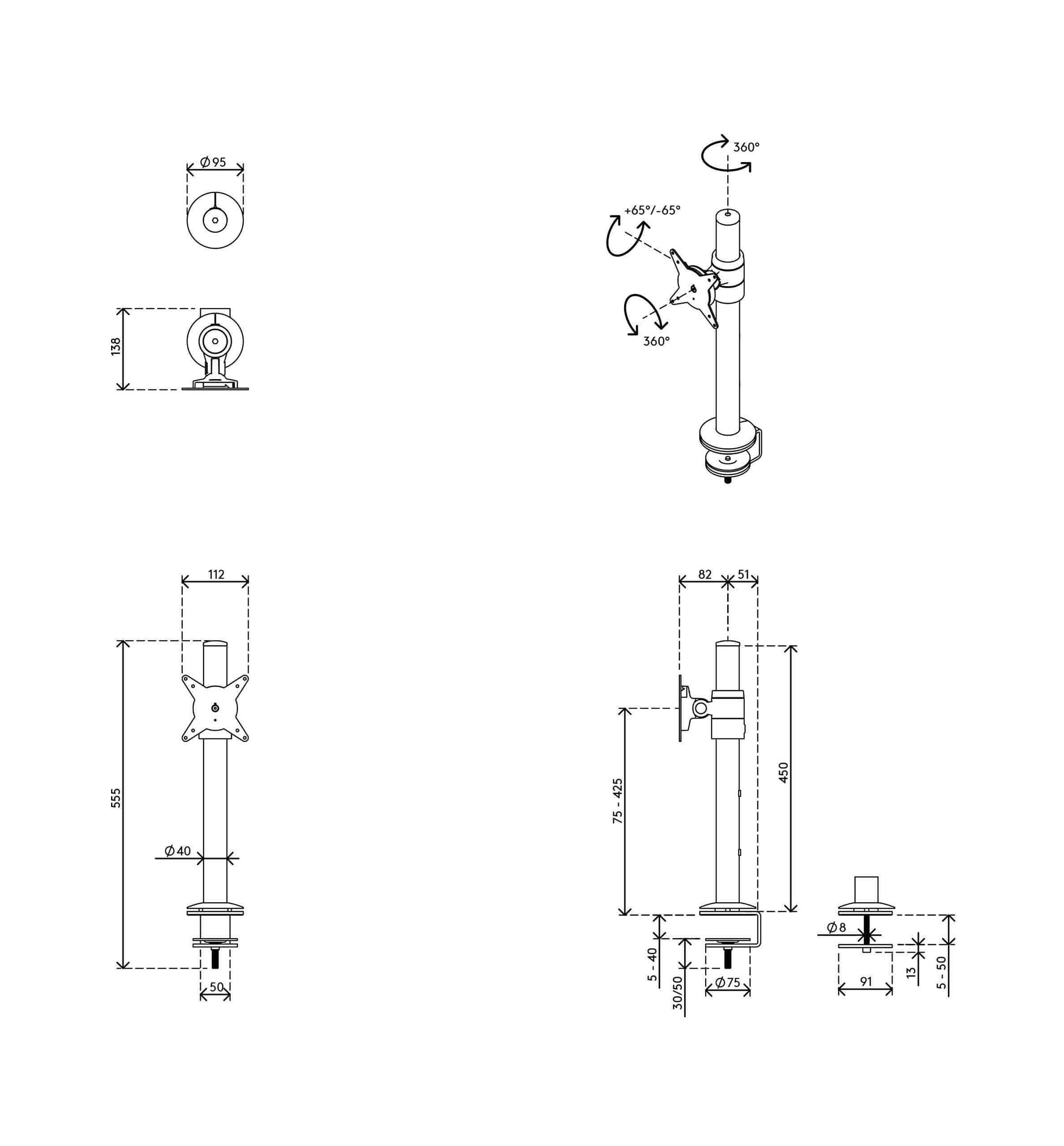 - Geeignet für eine Schreibtischdicke von 5 bis 40 (Klemme) oder 50 mm (Durchtisch)
