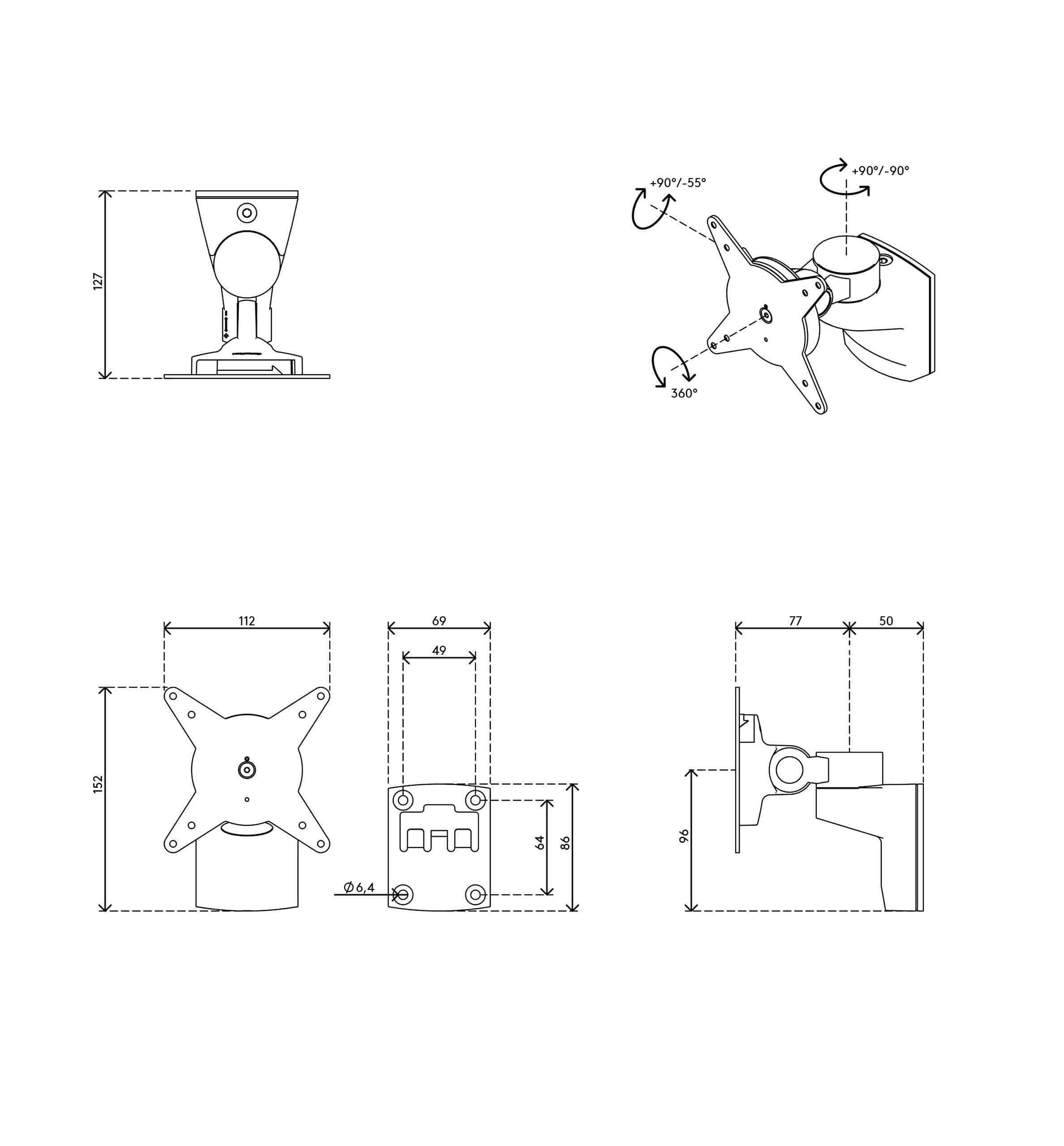 - Monitor: neigbar +90°/-55°, schwenkbar +90°/-90°, Drehbar 360°