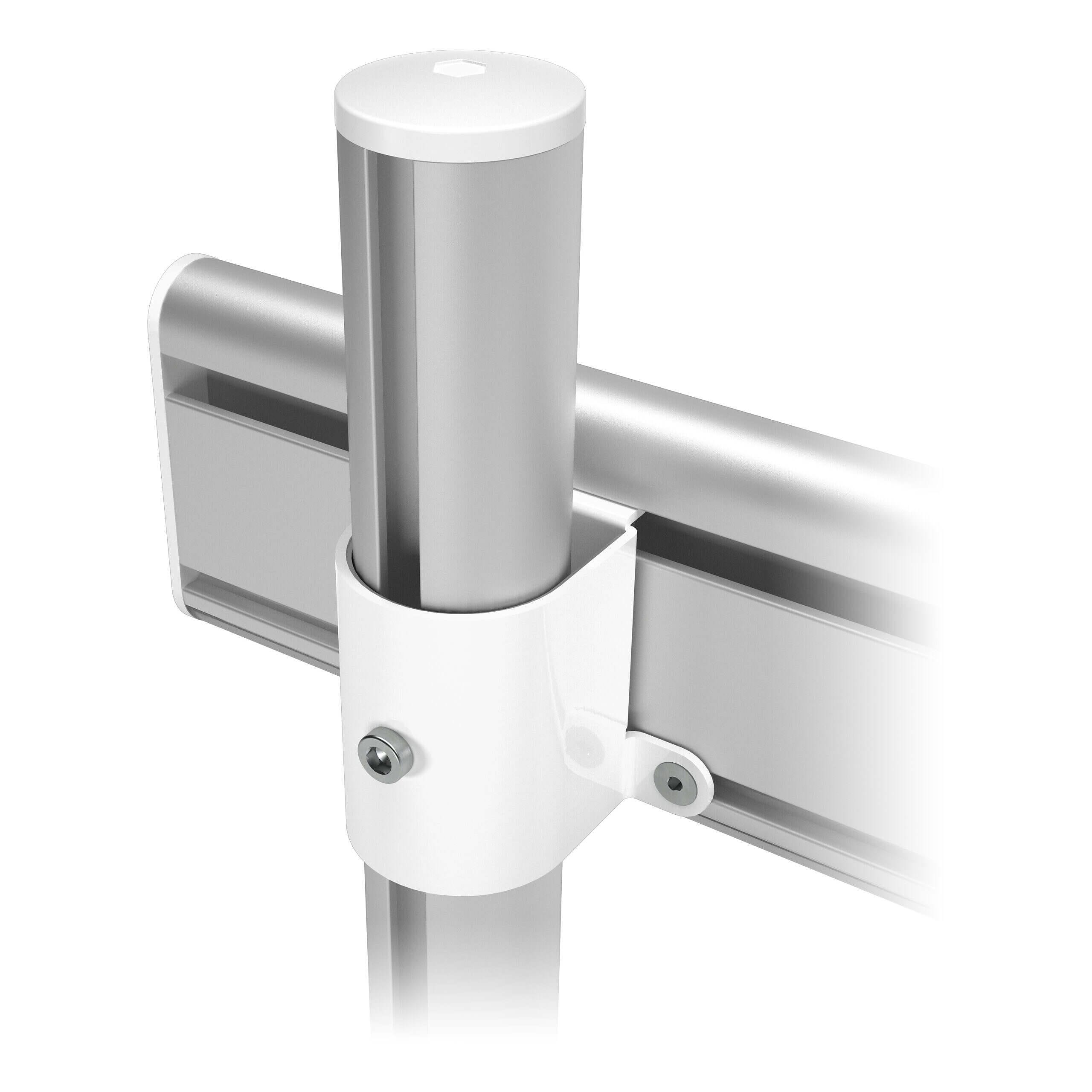 Da das Schienensystem an der Vorderseite befestigt ist, lässt sich der Abstand zwischen den Säulen einstellen. Dadurch kann es überall auf einem Schreibtisch montiert werden, entweder mit einer Tischklemme oder einer Durchtischbefestigung. Kabel werden einfach im Kabelkanal des Schienensystems verborgen, wodurch ein ordentlicher, professioneller Eindruck entsteht.