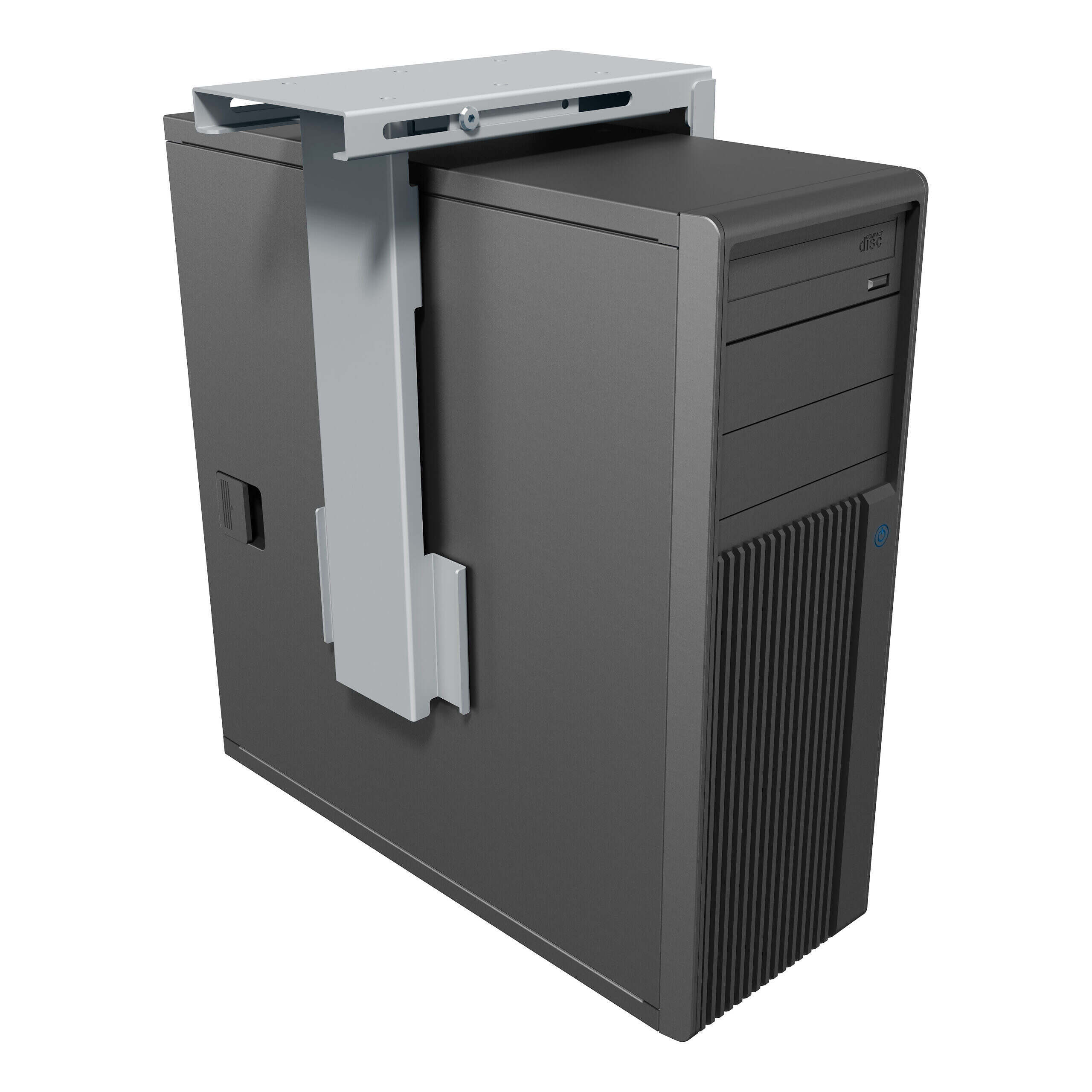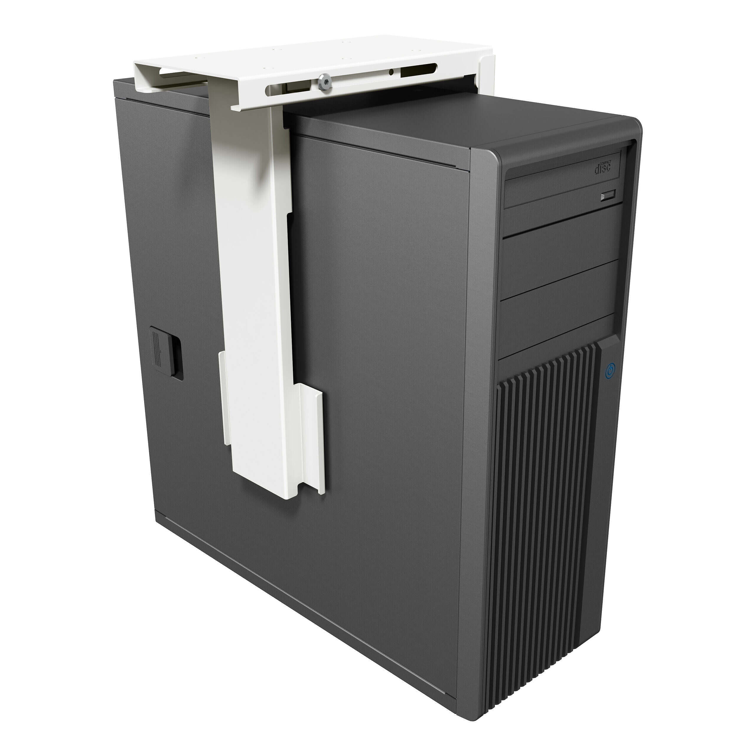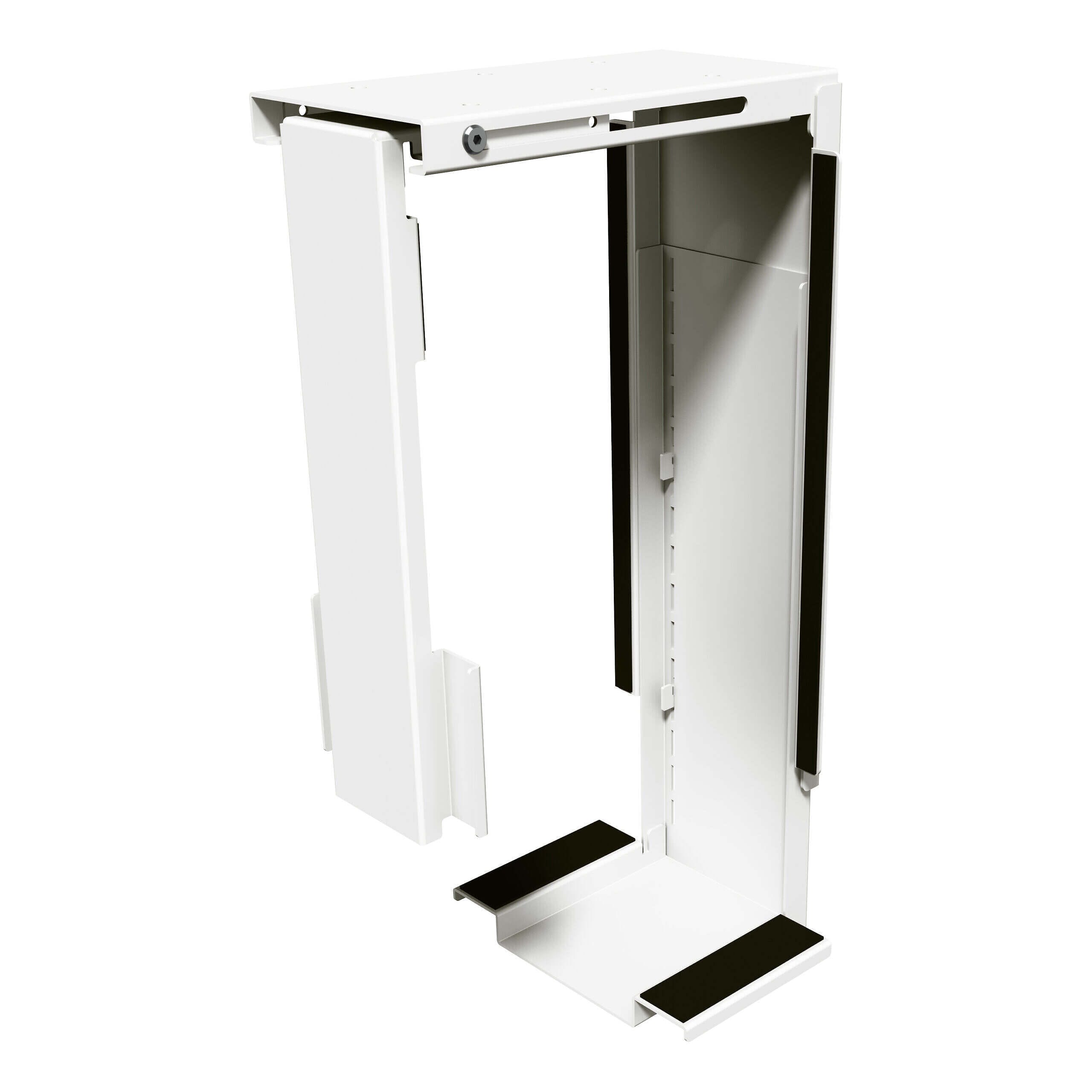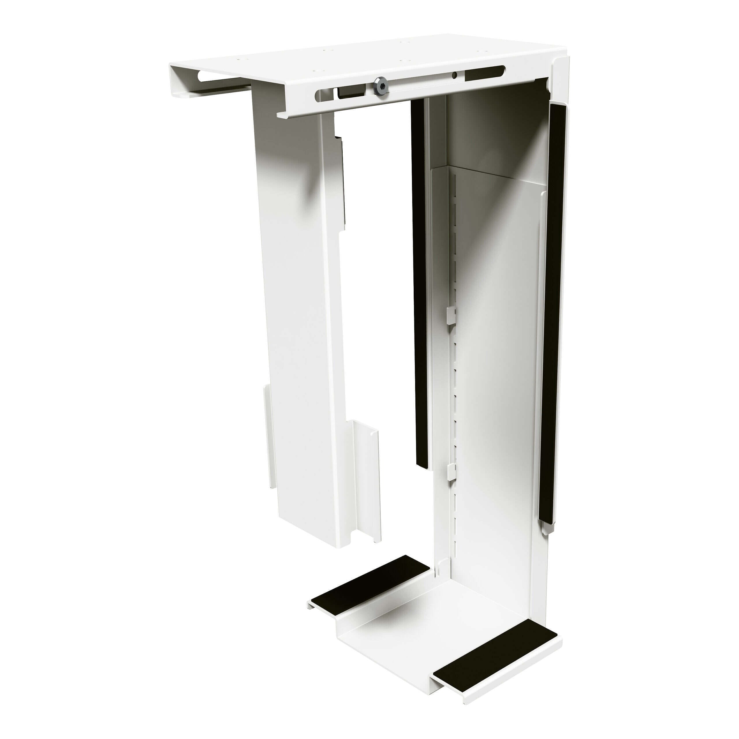 Diese starre Computerhalterung wird unter dem Schreibtisch angebracht und hält den Computer vom Fußboden fern. Dadurch ist der Computer wesentlich weniger Staub ausgesetzt und ist leichter zu erreichen und zu warten. Die Computerhalterung ist an der Oberseite, die unter den Schreibtisch kommt, mit Klebeband versehen. Befestigen Sie sie ganz einfach mit “kleben und schrauben” an Ihrem Schreibtisch.