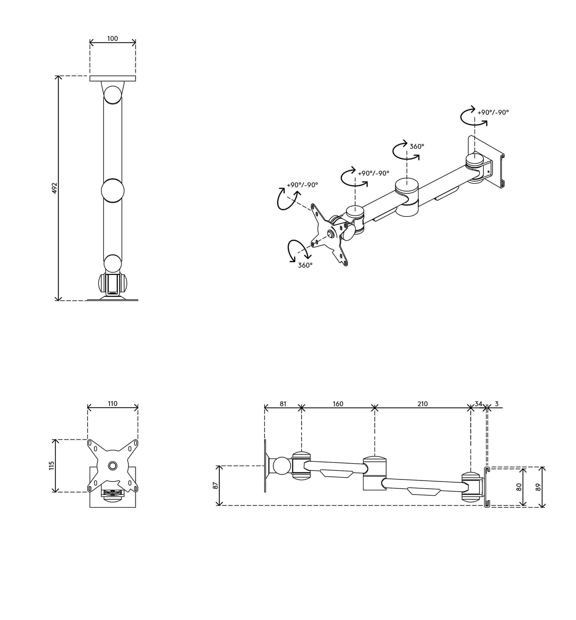 • Monitor: neigbar +90°/-90°, schwenkbar +90°/-90°, Drehbar 360°